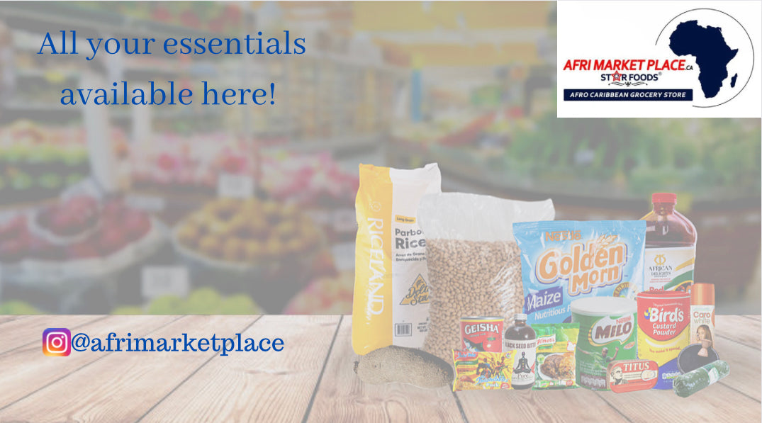 Powdered Milk, Pounded Yam, Garri, Vegetable Oil, Sardines, Custard, Indomie noodles.